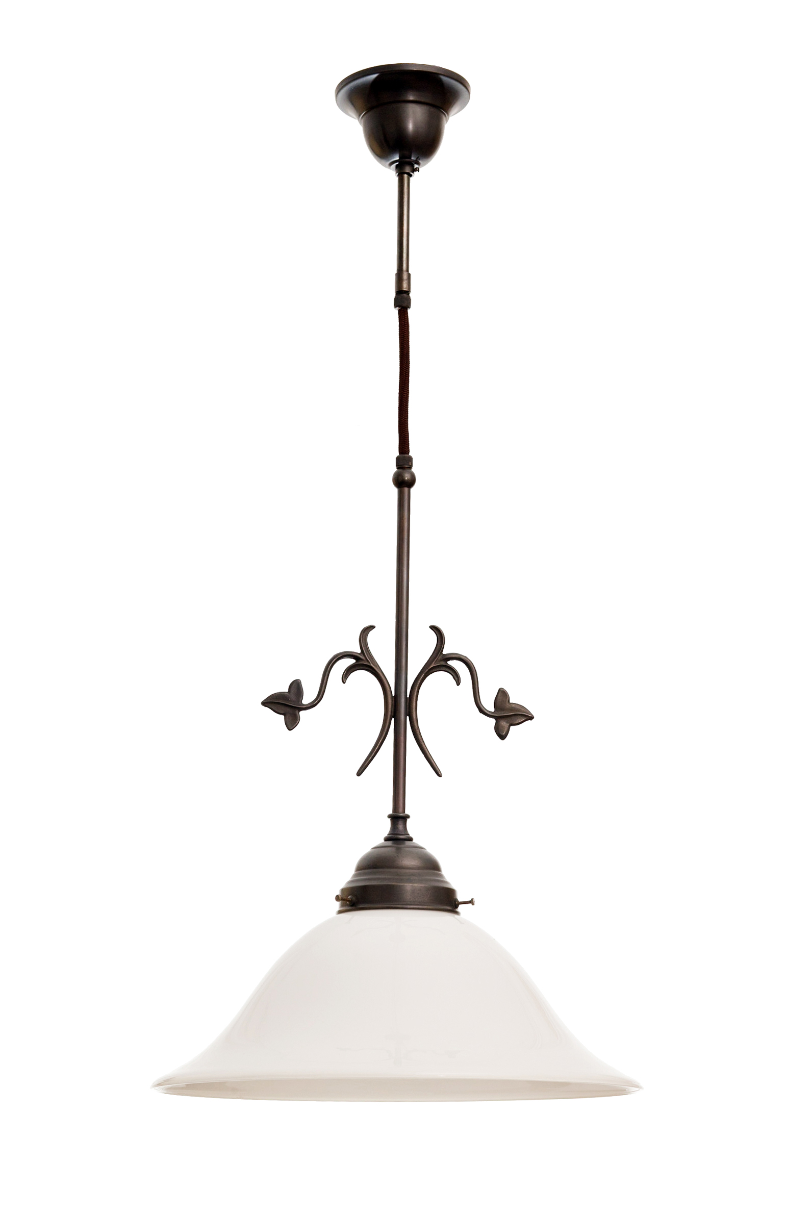 Klasycznie piękna lampa mosiężna, wpisująca się stylem i najwyższym standardem wykonania w długą tradycję wzornictwa Lamptique. Użyto klosza wytworzonego metodą dmuchanego szkła opalowego, którego miękka krawędź dolna koresponduje z florystycznymi elementami powyżej. Lampa oświetla pomieszczenie światłem nastrojowym i intymnym.